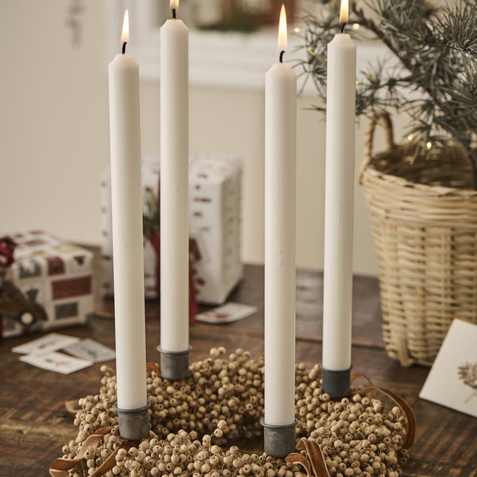 Adventskerzen weiß mit eingeprägten Zahlen 1-4