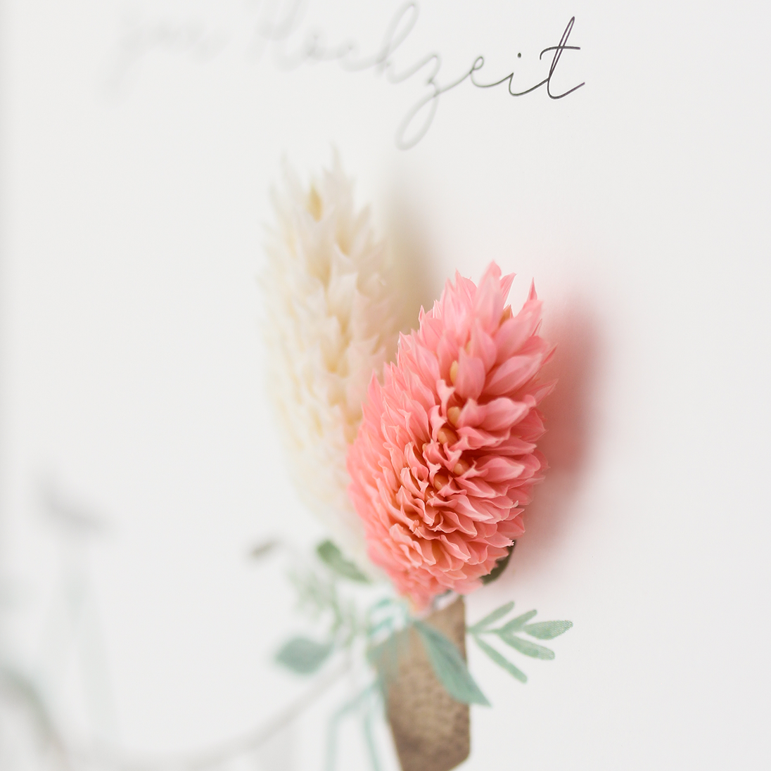 Von Hand eingesteckte Trockenblumen verschmelzen mit schönsten Watercolor-Designs zu kleinen Kunstwerken.