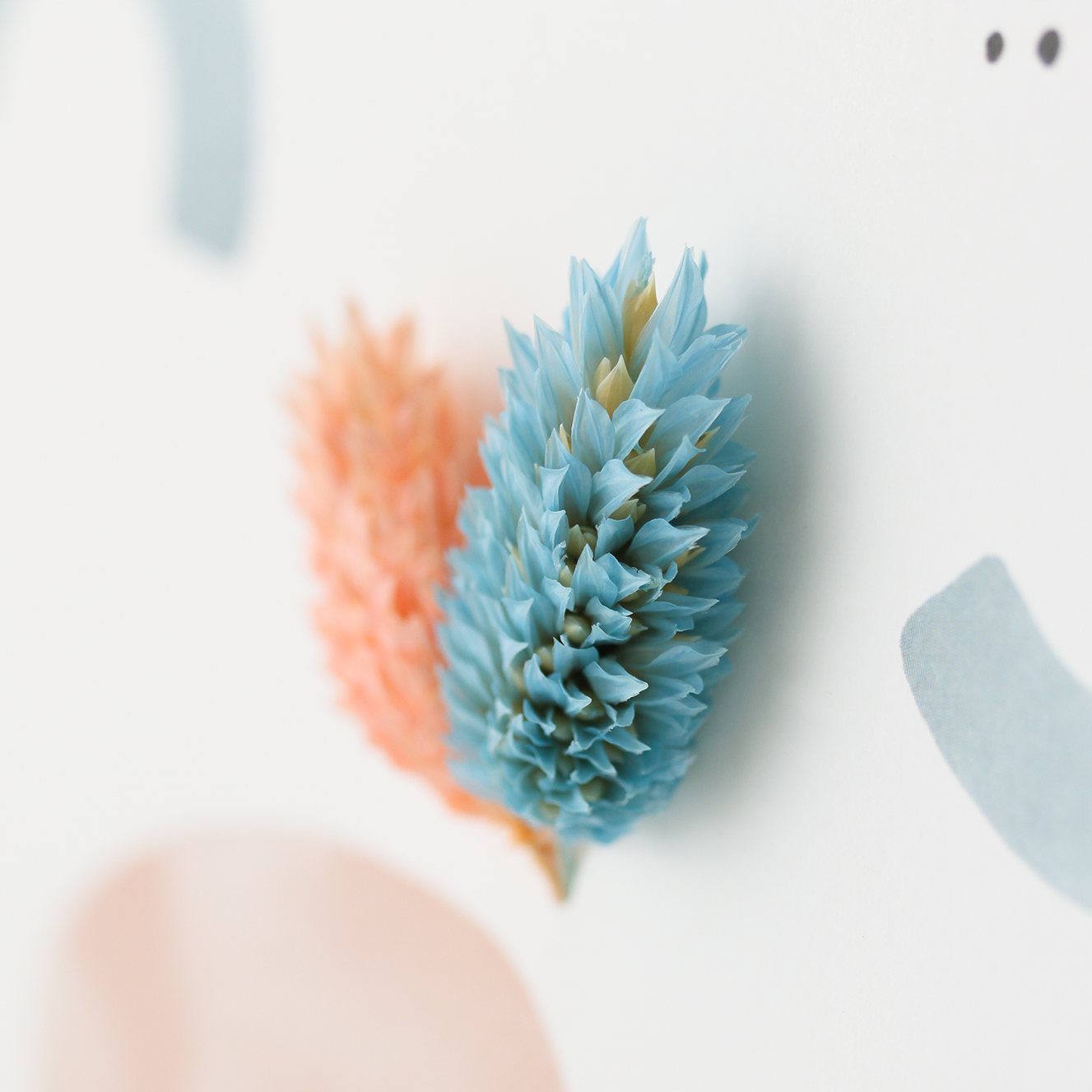 Von Hand eingesteckte Trockenblumen verschmelzen mit schönsten Watercolor-Designs zu kleinen Kunstwerken.