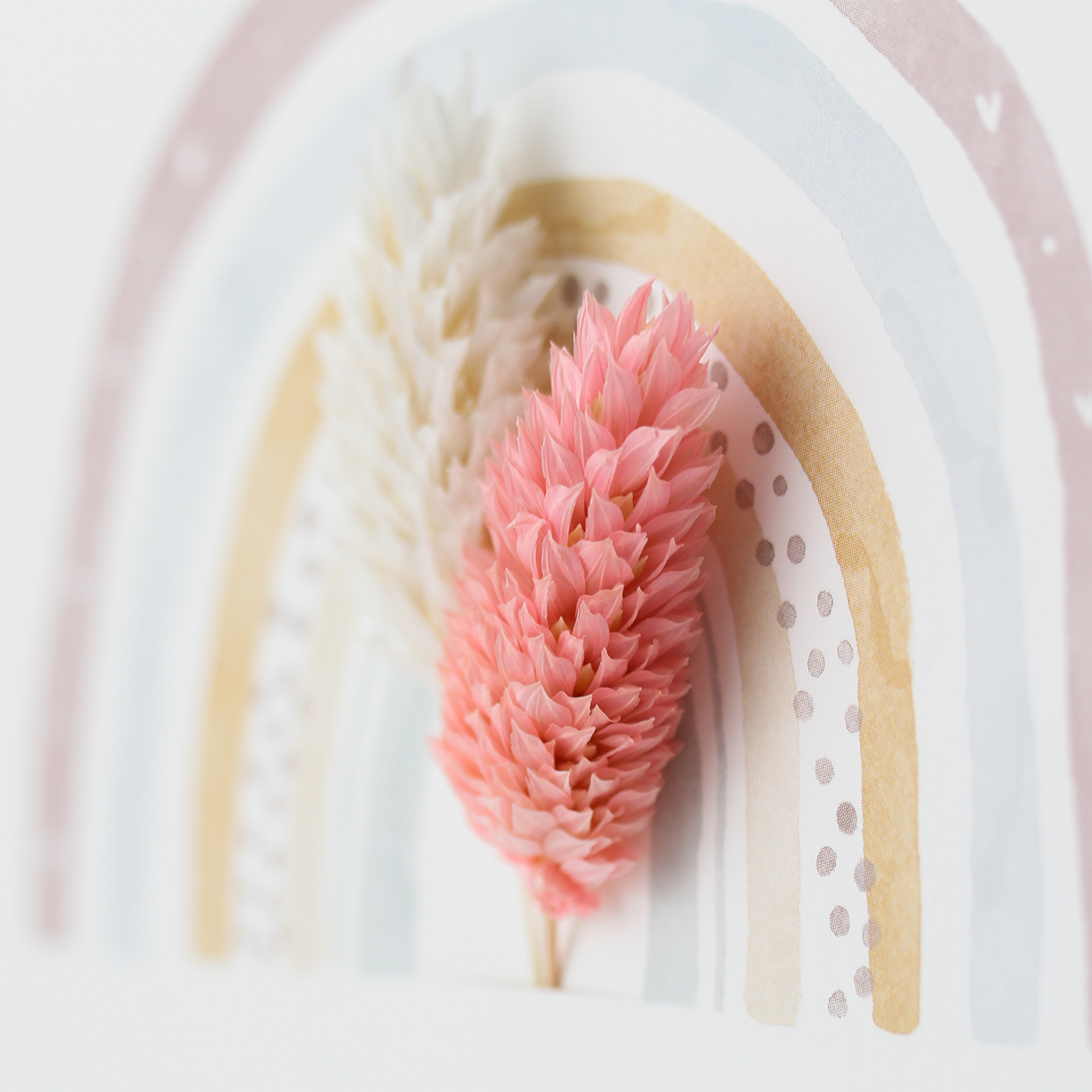 Von Hand eingesteckte Trockenblumen verschmelzen mit schönsten Watercolor-Designs zu kleinen Kunstwerken.