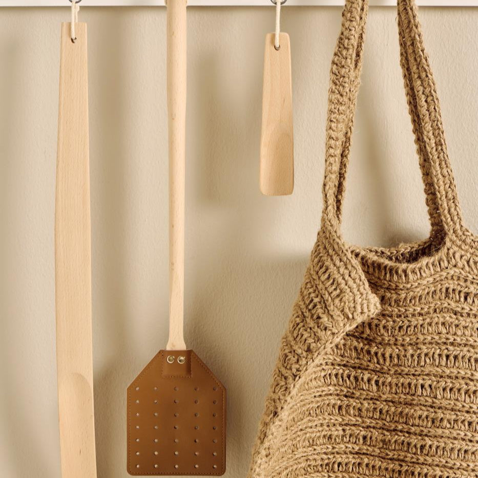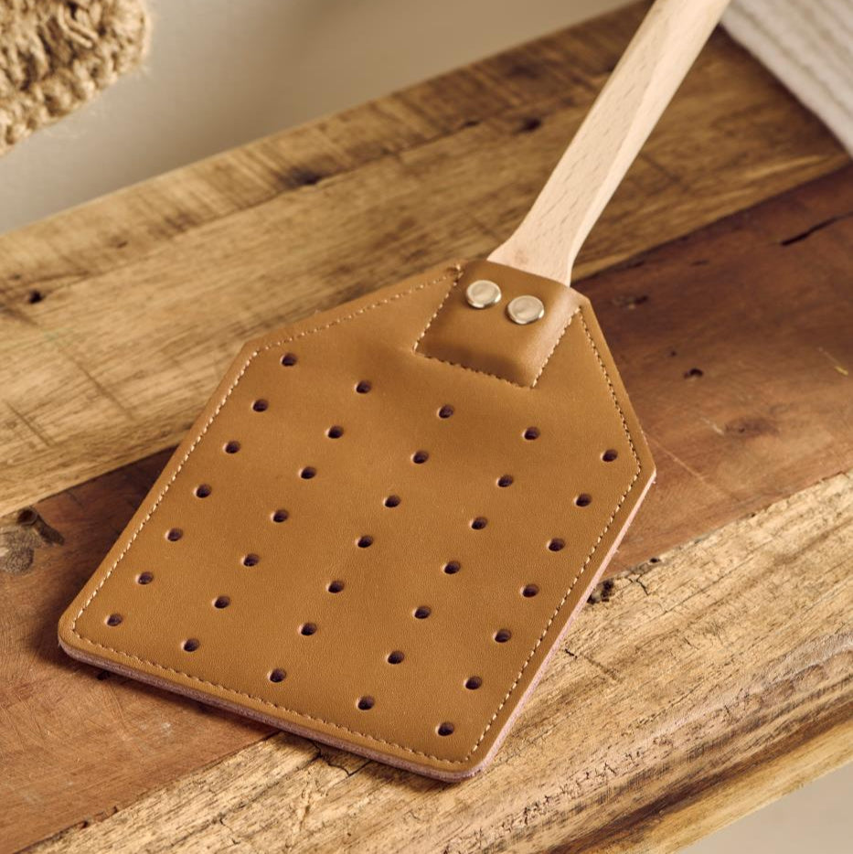 Fliegenklatsche mit Leder und Baumwollschnur