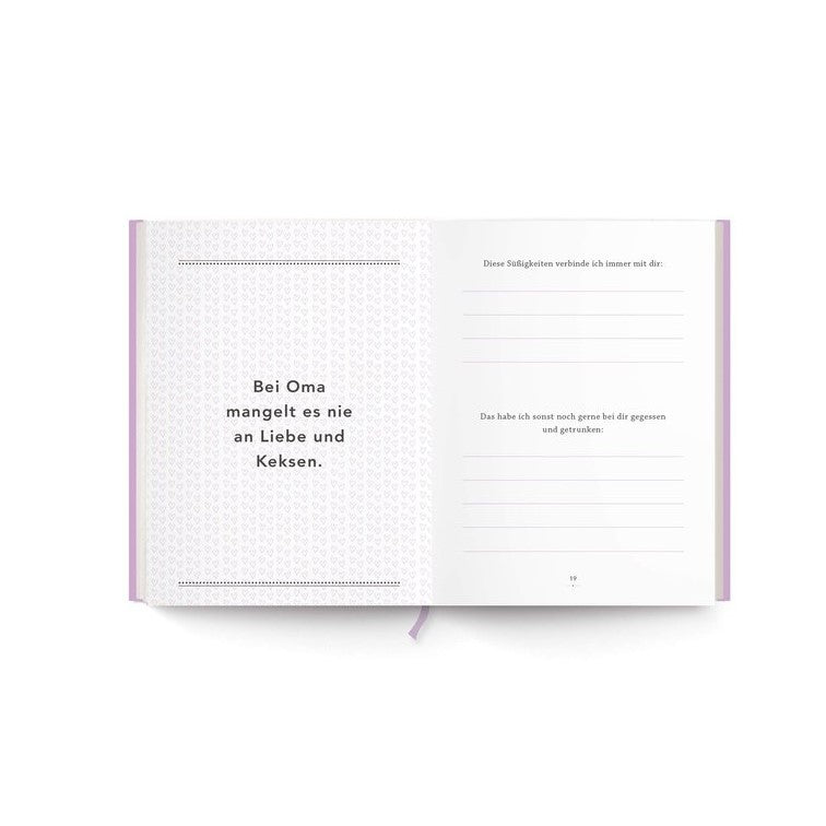 Mit der Oma sind viele besondere Erinnerungen verbunden. Und doch findet man im Alltag kaum Gelegenheit, sich bei diesem ganz besonderen Menschen zu bedanken. „Für meine allerliebste Oma“ ist ein liebevoll gestaltetes Eintragbuch, das nicht nur Platz bietet für die eigenen Erinnerungen, sondern auch für Fotos und weitere Geschichten. Ausgefüllt wird es zu einem persönlichen Geschenk für die Oma. Zum Geburtstag, zu Weihnachten – oder einfach für zwischendurch.