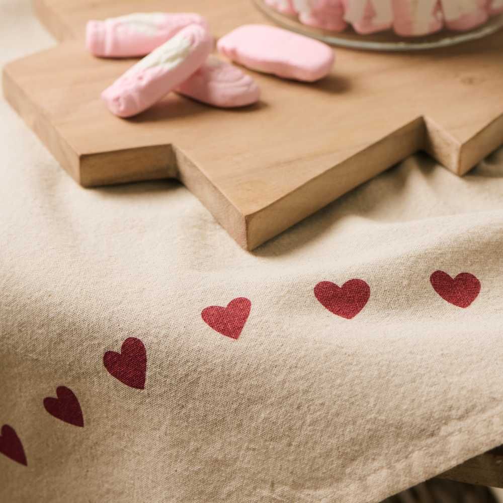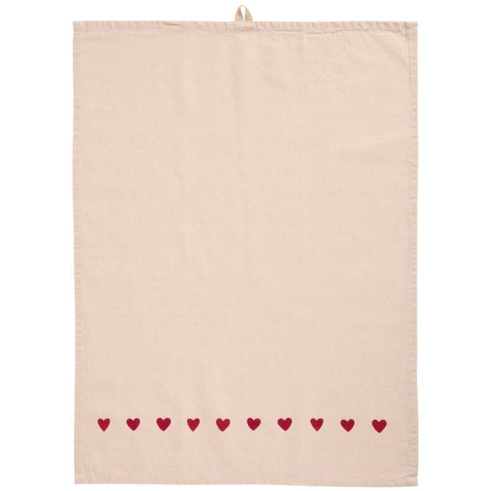 Geschirrtuch Emma natur mit roten Herzen