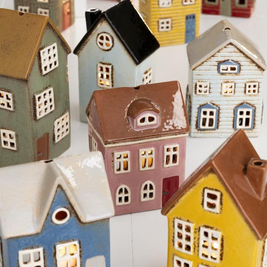 Haus für Teelicht Nyhavn gerundetes Dachfenster rote Tür