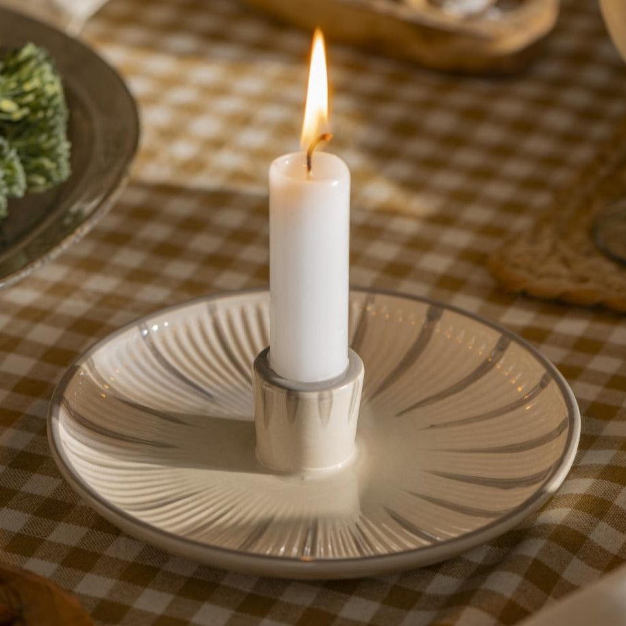 Kerzenhalter für Stabkerze graue handgemalte Streifen