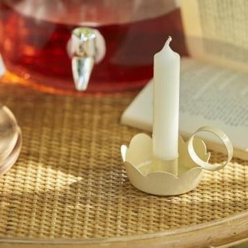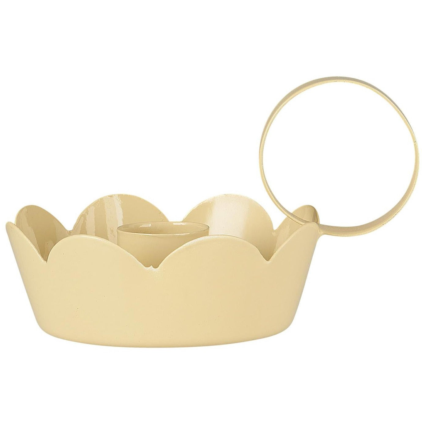 Kerzenhalter für Stabkerze mit Henkel gewellte Kante zart gelb