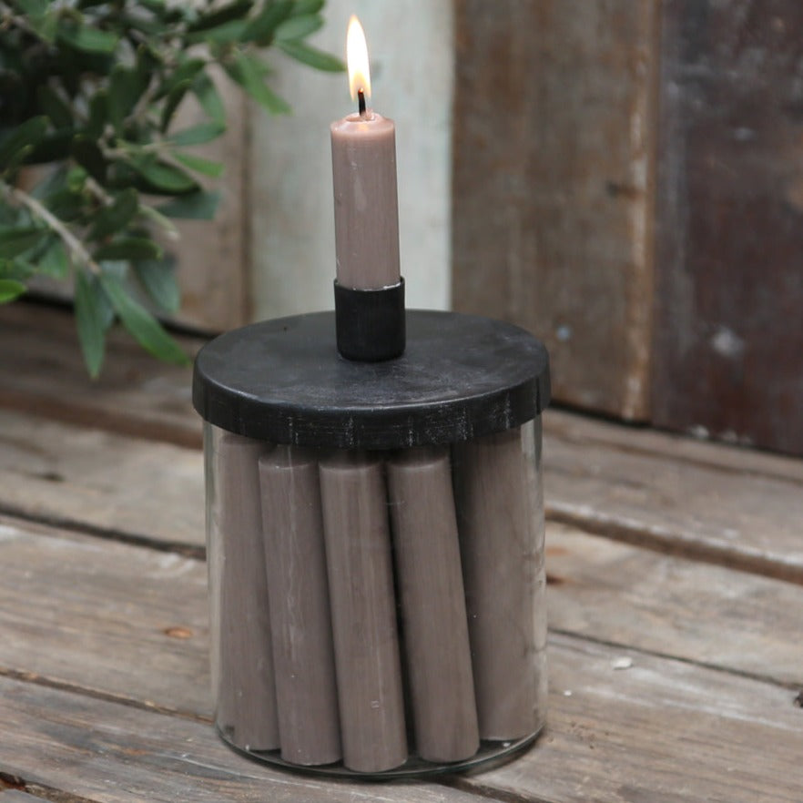 Kerzenhalter für Stabkerze mit Metalldeckel schwarz