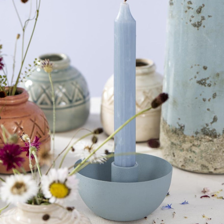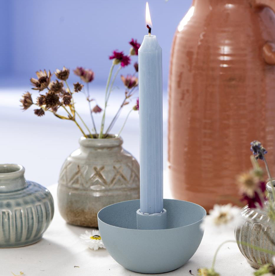 Kerzenhalter für Stabkerze schüsselförmig blau