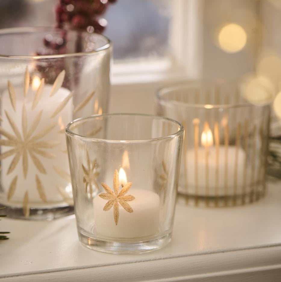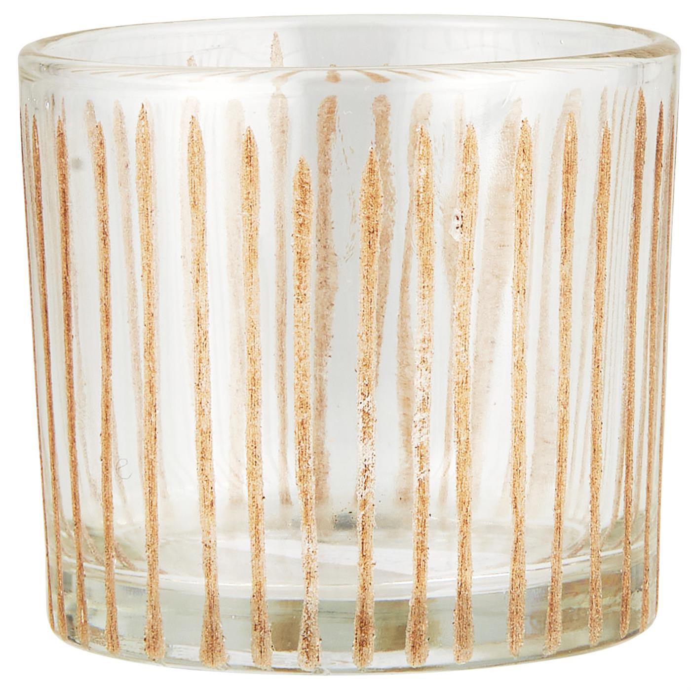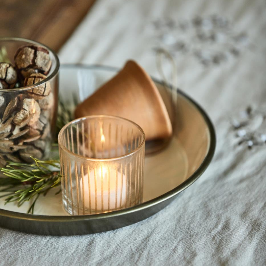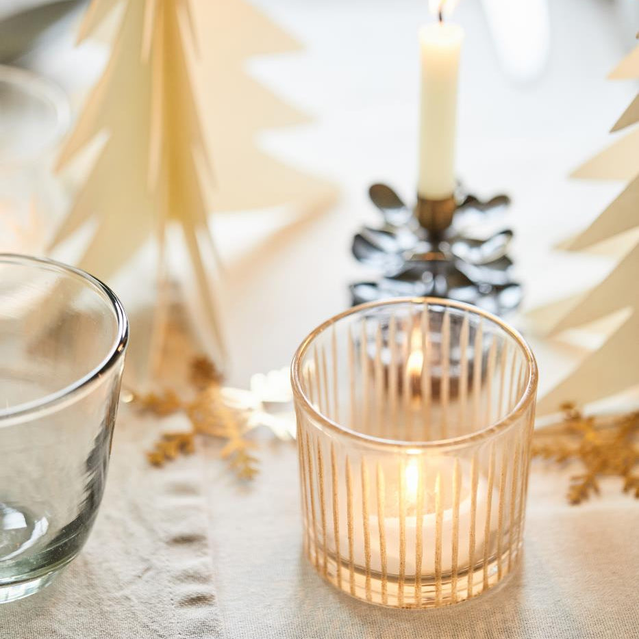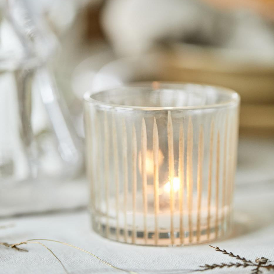 Kerzenhalter Glas für Teelicht mit eingravierten Streifen