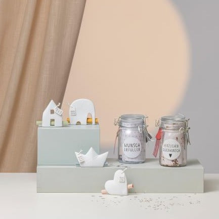 Porzellan, teilweise mit Relief. Mit Band und bedruckttem Hangtag.