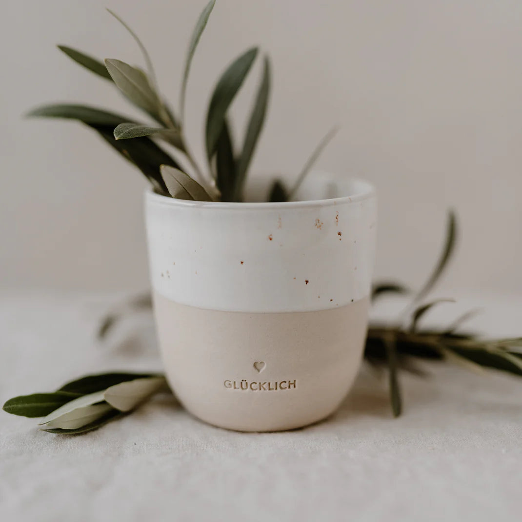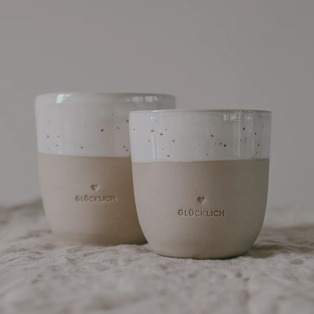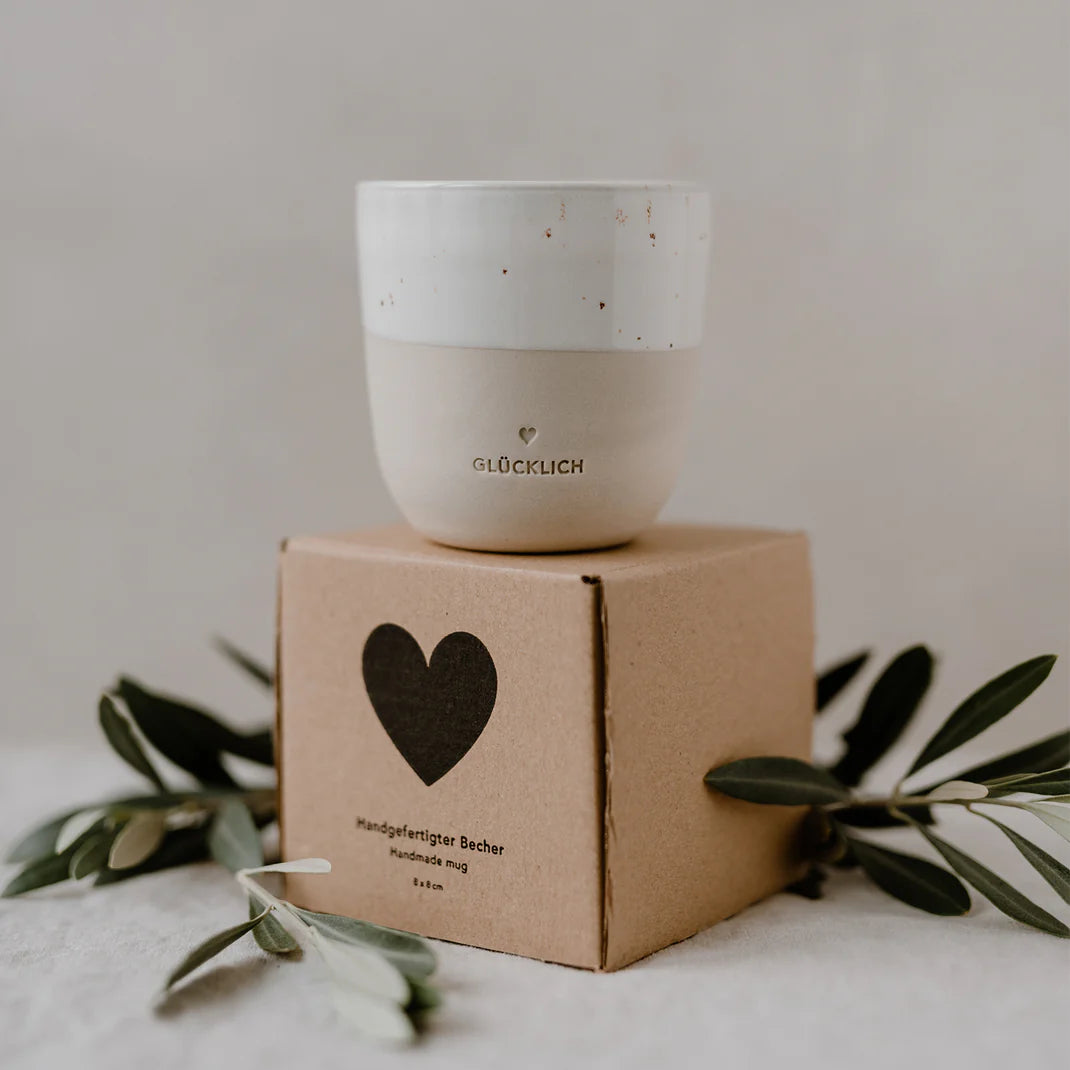 Kleiner Becher "Glücklich" - Eulenschnitt