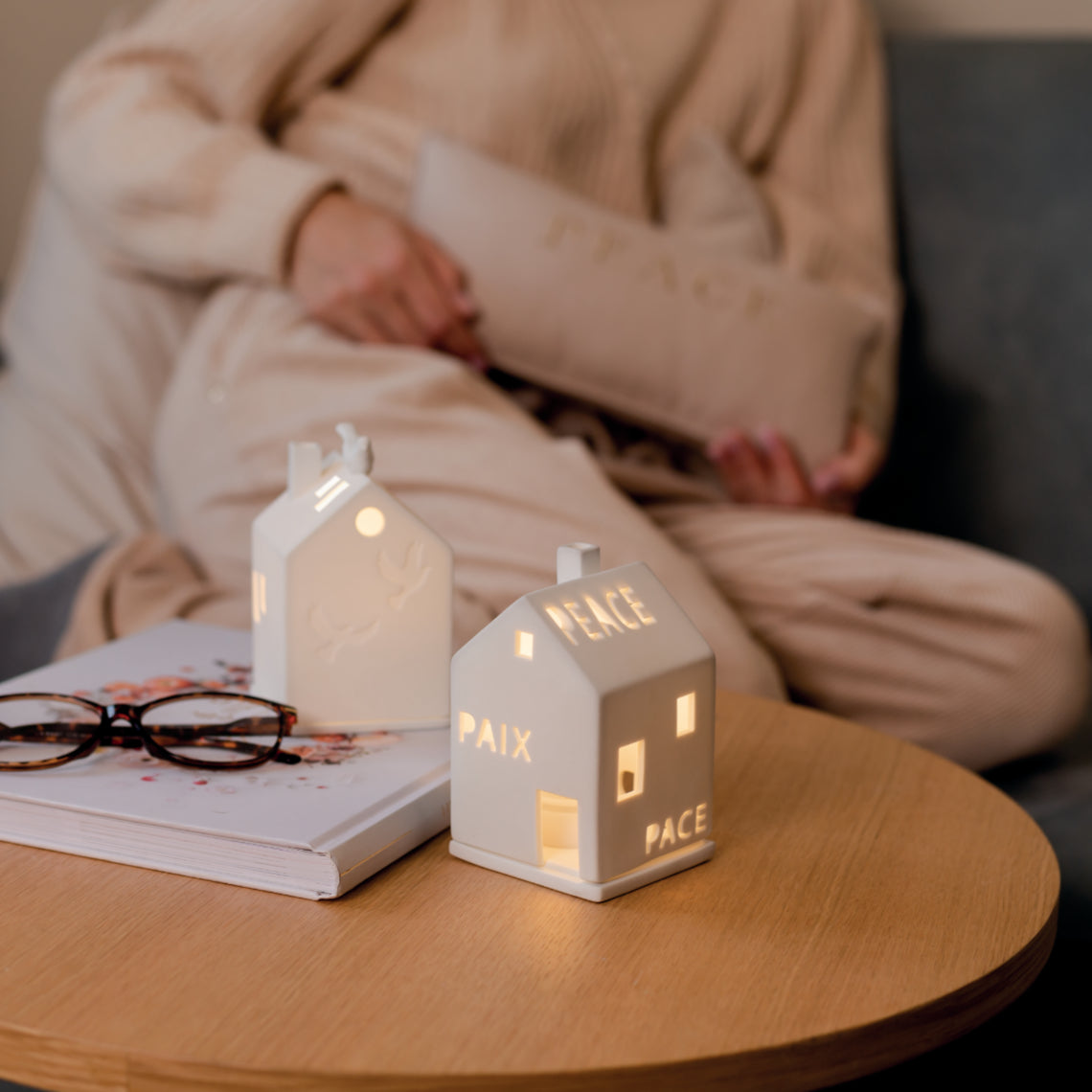 Lichthaus "Frieden, Peace" – mehrsprachig