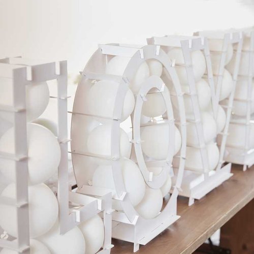 Erstellen Sie das ultimative Statement-Dekor und beeindrucken Sie Ihre Hochzeitsgäste mit diesem unglaublichen Ballon-Mosaikständer in LOVE-Form.