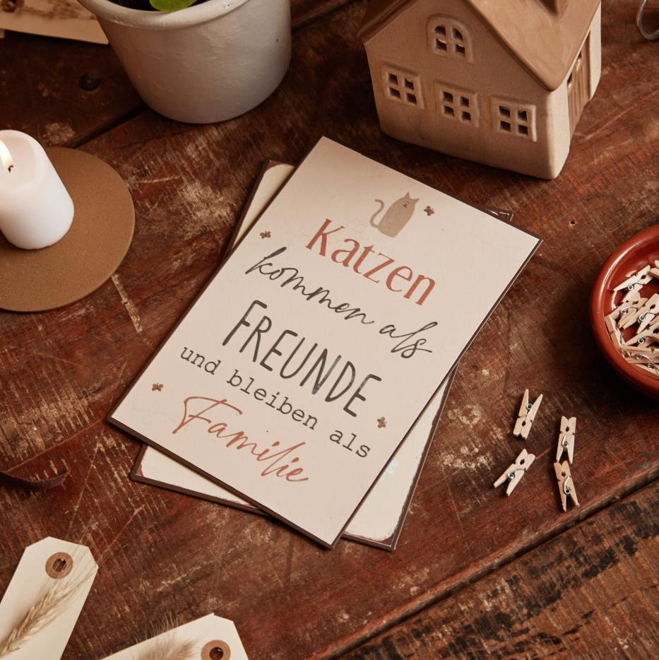 Metallschild "Katzen kommen als Freunde"