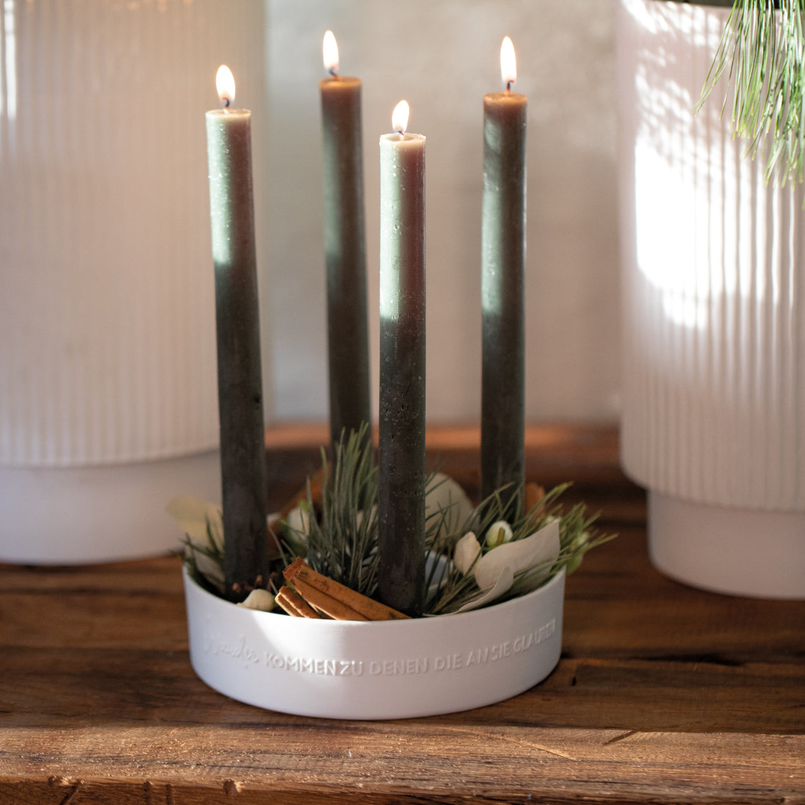 Porzellankranz für Stabkerzen "Wunder kommen"