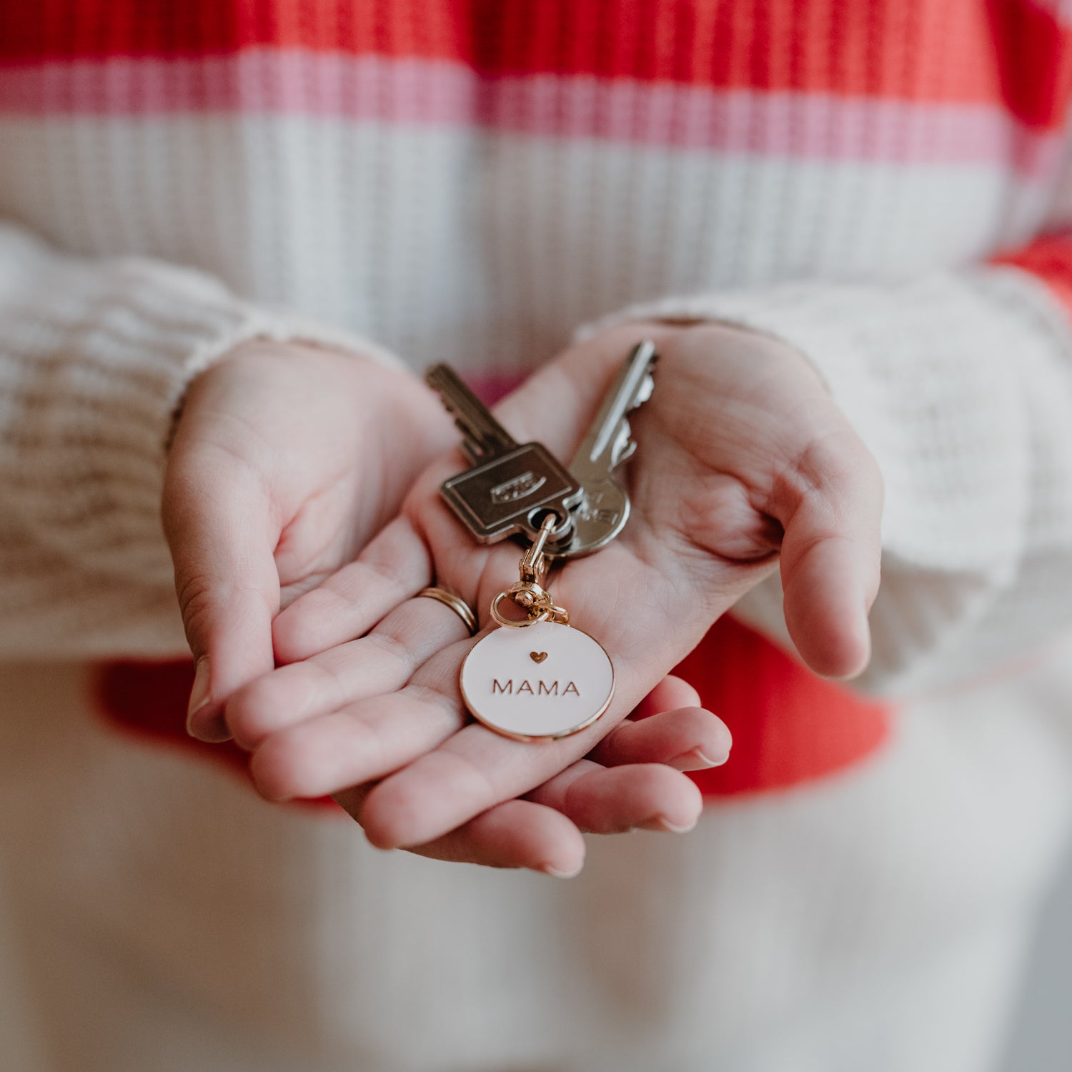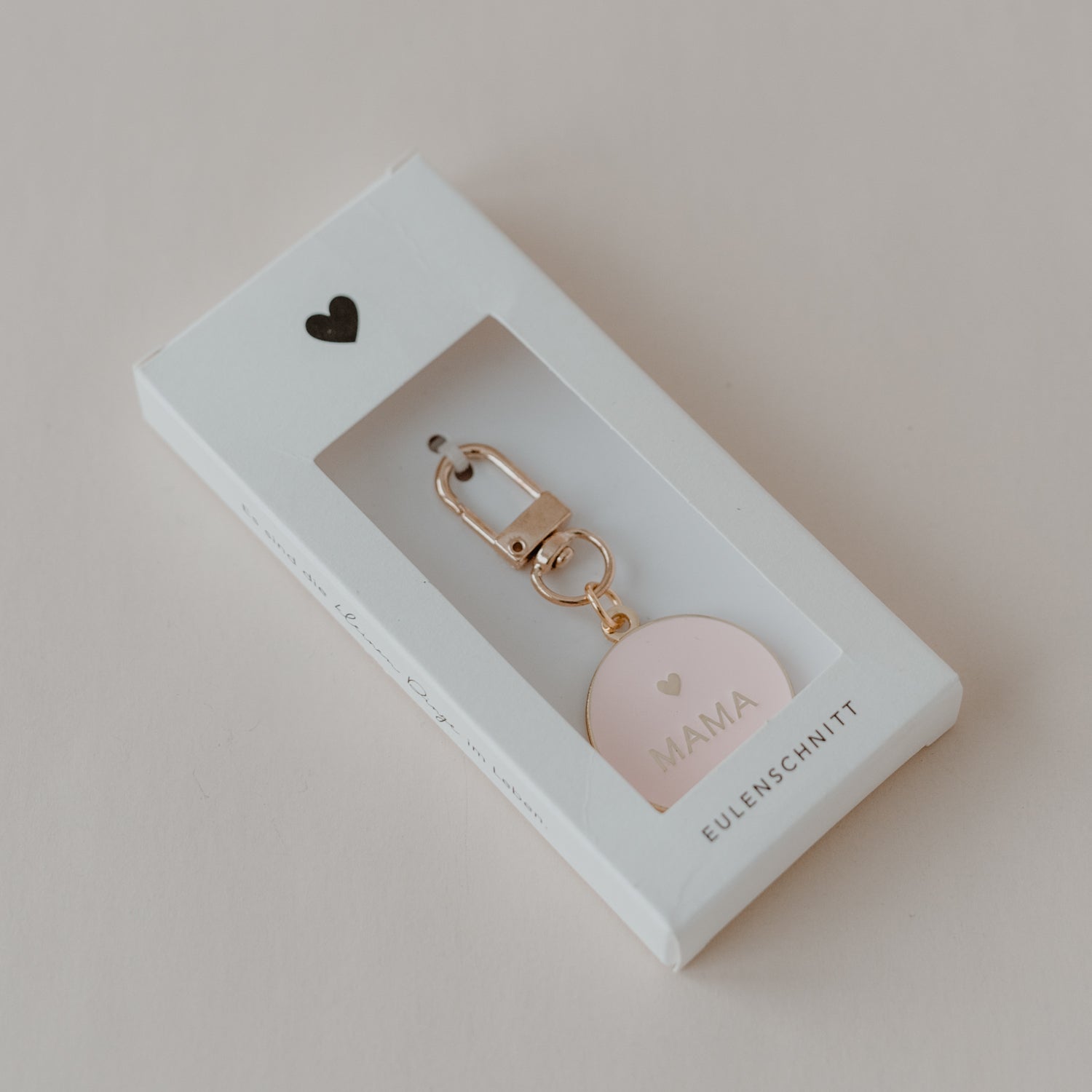 Du suchst noch ein Geschenk für deine Mama zum Muttertag oder eine werdende Mama? Ein leichter kleiner Schlüsselanhänger mit rosanen Emaille Design und goldenem Mama Schriftzug und einem kleinen Herzen.