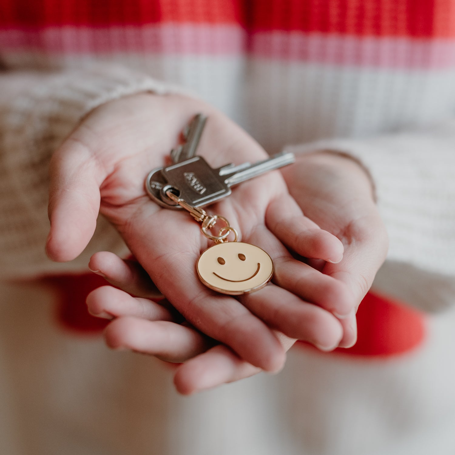 Neue coole und motivierende Statement Accessoires für dich - unsere neuen Schlüsselanhänger aus Metall. Entdecke unseren Schlüsselanhänger Smiley in wunderschönem Gelb.