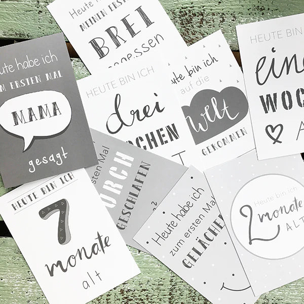 Baby Meilensteinkarten grau/ weiß - Mintkind für 18,90 Euro