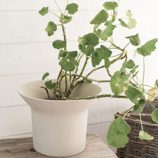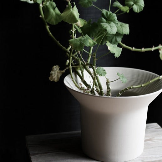 Blumentopf aus mattierter Keramik.Ein großer und kräftiger Blumentopf, der sofort ins Auge fällt.Modernes und innovatives Design mit einem Gespür für kleine Details wie die Streifen, die auf der Innenseite verlaufen.