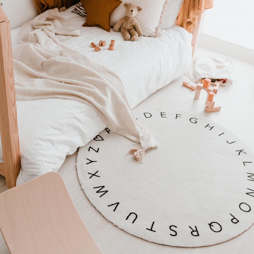 Waschbarer Kinderteppich "ABC" - Eulenschnitt
